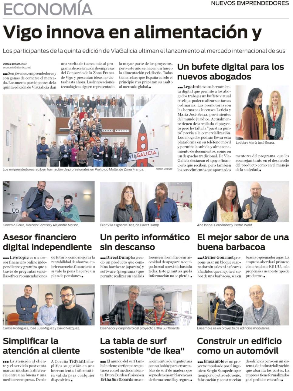 Dentro del entorno digital se encuentran los proyectos Livetopic, asesor financiero online; Legalmit, bufete virtual online para abogados; o Tidyant, una aplicación para la gestión del ciclo de venta y post-venta de empresas de servicios técnicos. Además, se han seleccionado iniciativas como Ertha Surfboards, fabricante de tablas de surf ecofriendly; Xtonebox, dedicados a la fabricación de equipos vintage de alta fidelidad y audio profesional; o Colibrí, centrada en la venta de scooters con diseños muy atractivos y la última tecnología en mecánica. La agroalimentación también estará presente, con la selección de cuatro proyectos relacionados con el sector: Galician Brew, premiada gama de cervezas con personalidad propia; Bisqato, nueva marca gallega de quesos y pastas blandas gourmet; Orballo, la primera plantación de té ecológica certificada de Europa; y Grilier, sazonador gourmet saludable para barbacoa